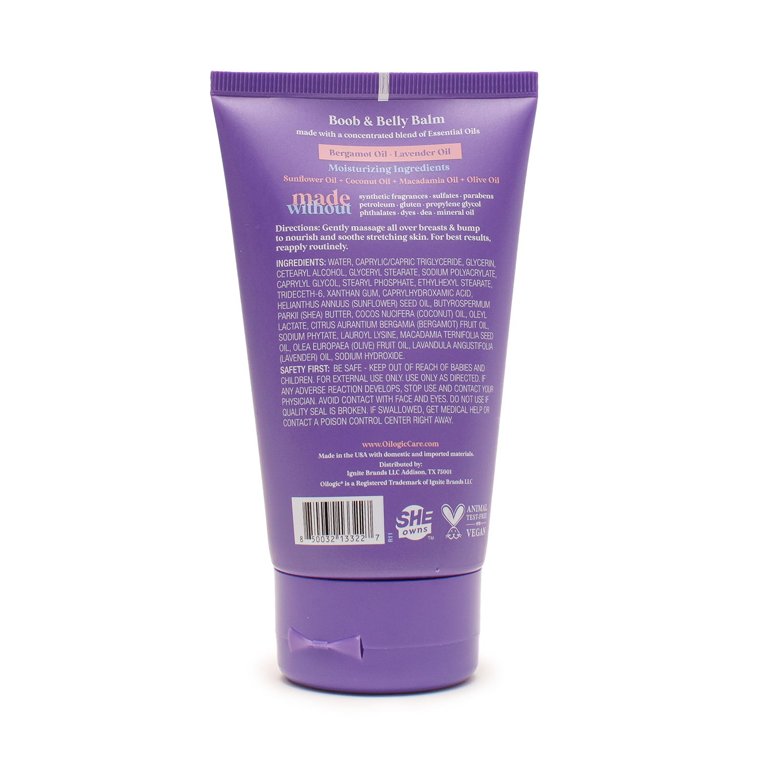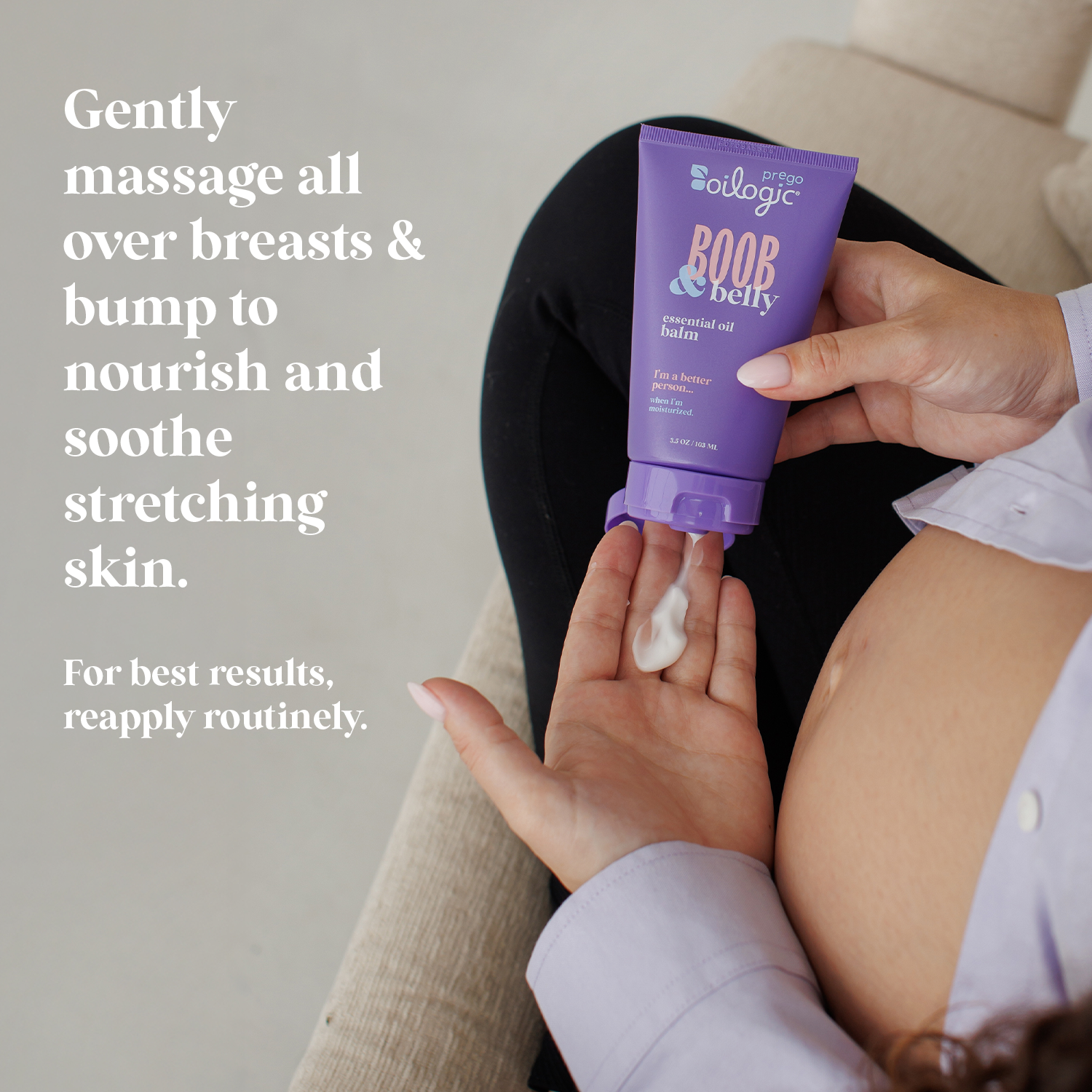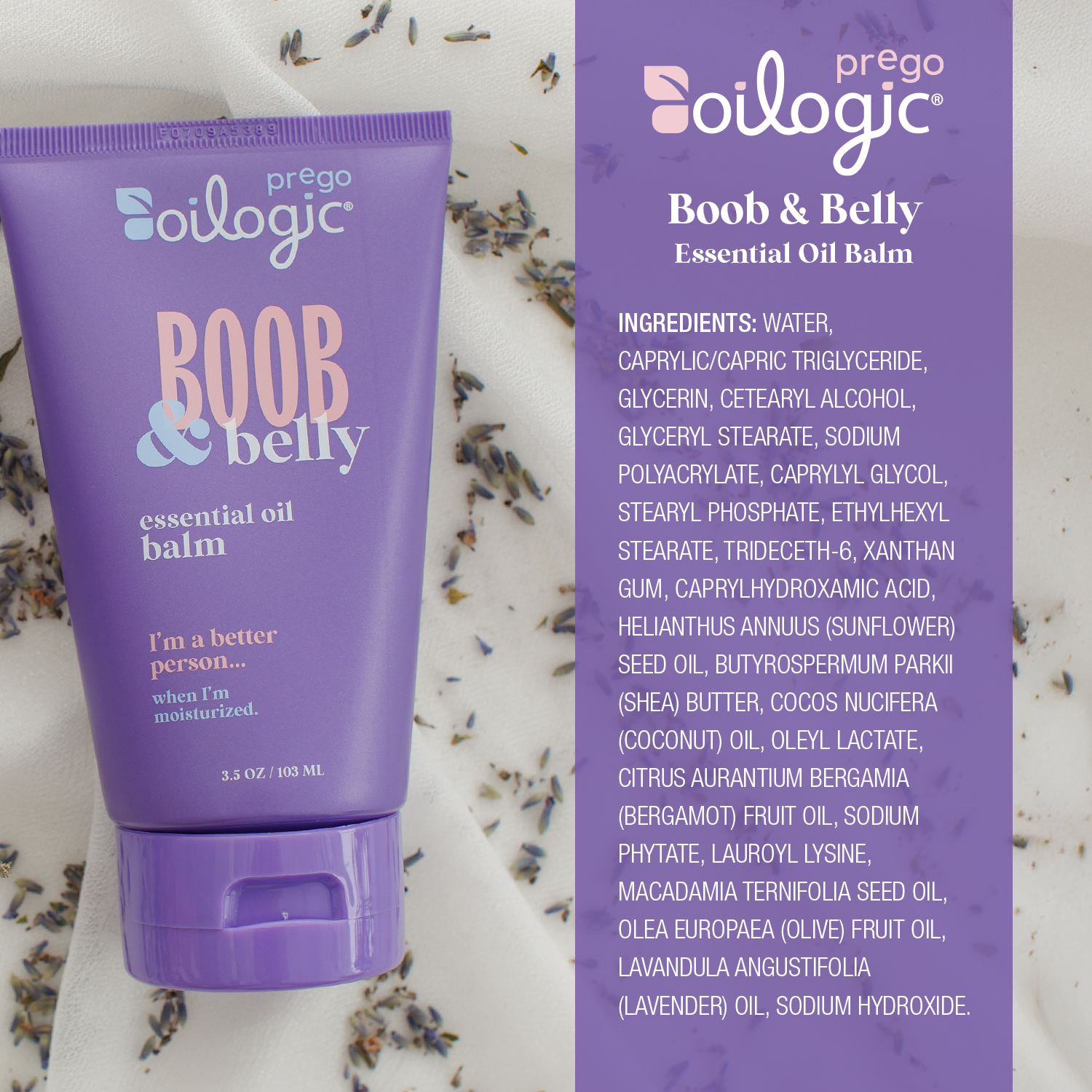 Oilogic Prego Boob & Belly Essential Oil Balm uses a concentrated blend of: